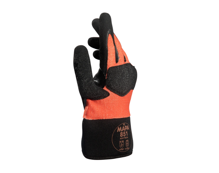 MAPA KRYTECH 851; Şok Darbe Önleyici: Gerekli bölgeler yastıklanarak darbelere ve ezilmelere karşı güçlendirilmiş ( Parmak üstü,Yumruk içi, Parmak boğumları, Avuç içi )