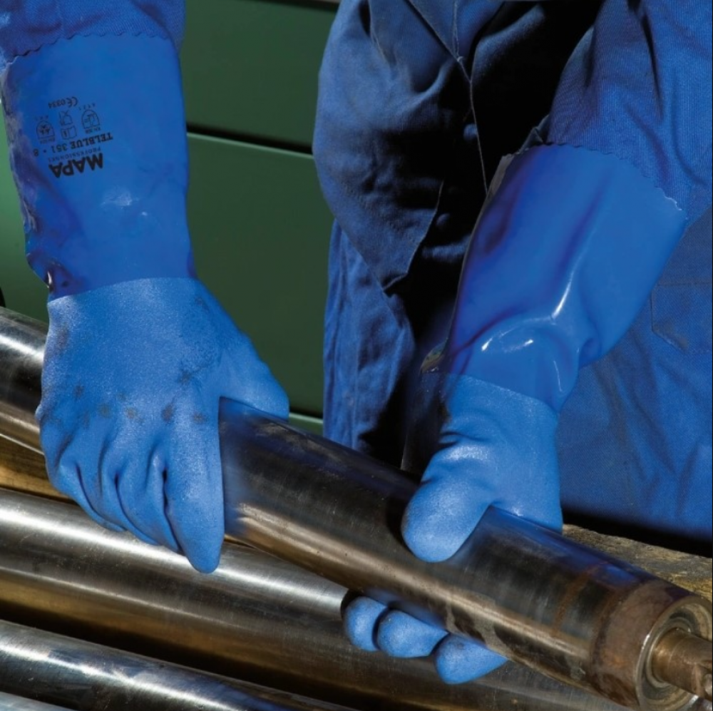 Telblue 351, genellikle kimyasal koruma, yağlı yüzeylerde çalışma veya soğuk ortamlar gibi durumlarda tercih edilen bir modeldir.