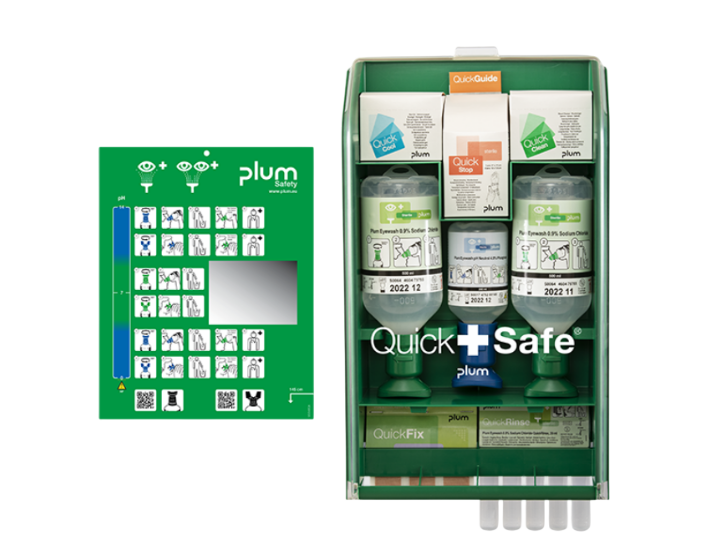 PLUM 5174 QUİCKSAFE SET; Kimyasal sıçrama ve yabancı cisimlere karşı hızlı ve etkili göz yıkama için tasarlanmış, steril ve kullanıma hazır pH nötr göz solüsyonu içeren taşınabilir set. Laboratuvar, sanayi ve iş güvenliği alanlarında güvenle kullanılabilir.